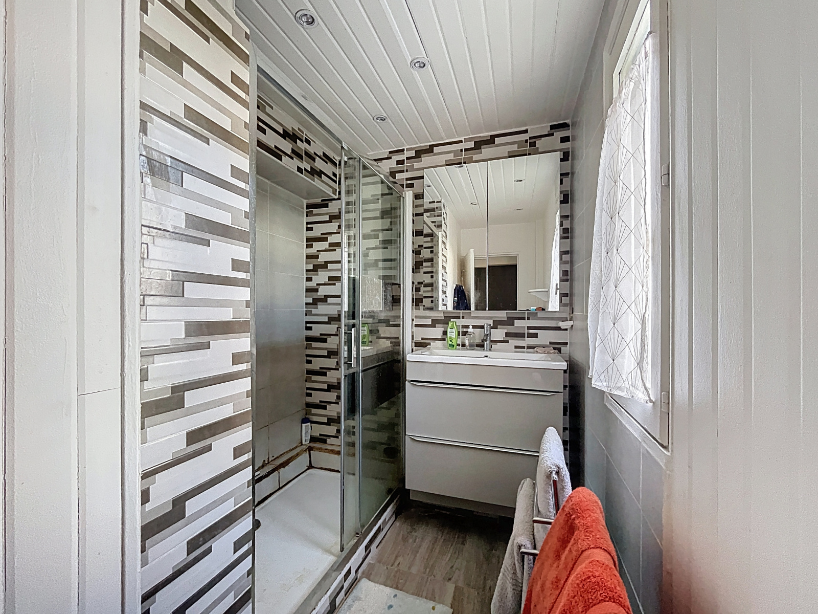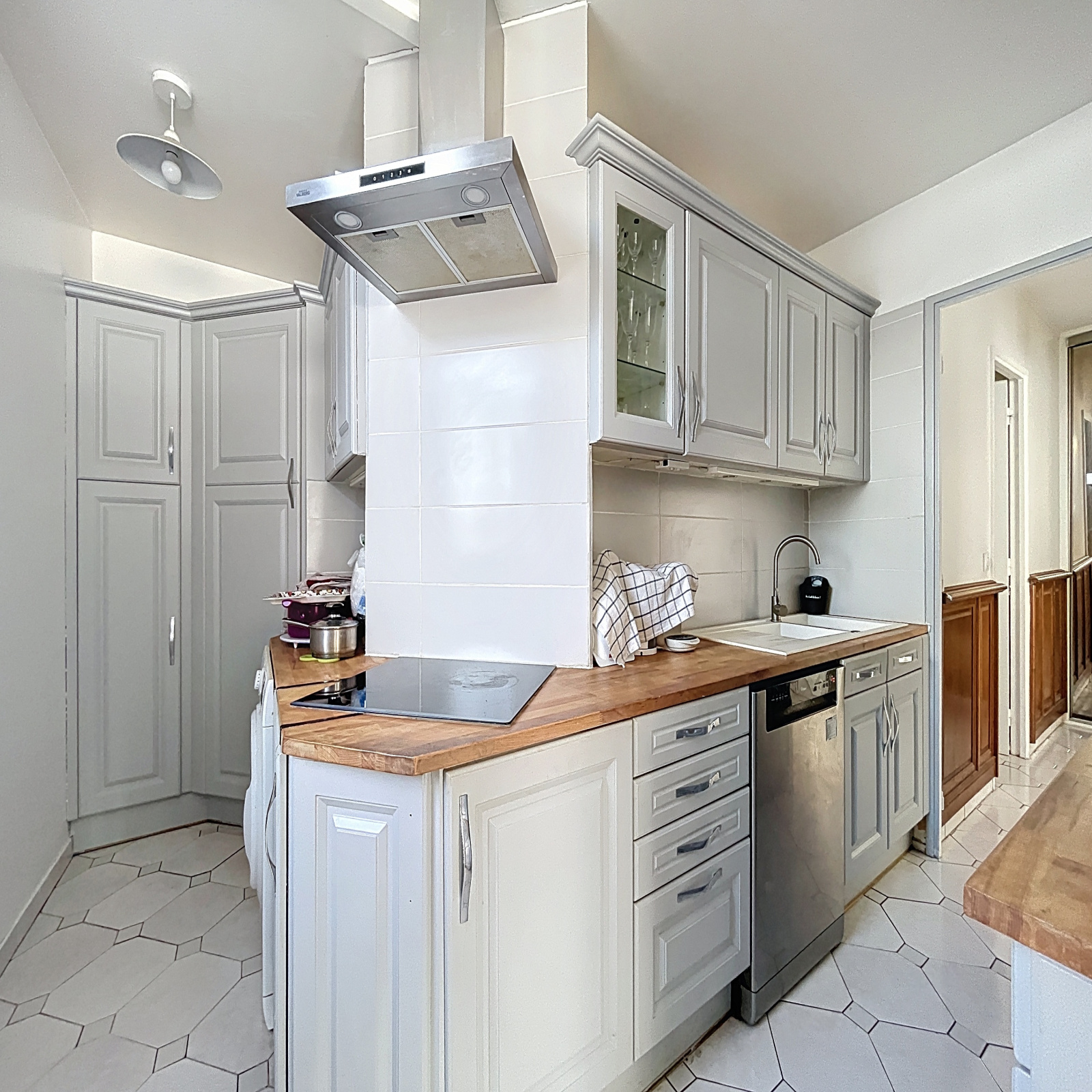 Il se compose d’une entrée avec rangements, d’un séjour, d’une cuisine aménagée, d’un dégagement desservant trois chambres, un dressing, une salle d’eau et un WC séparé.