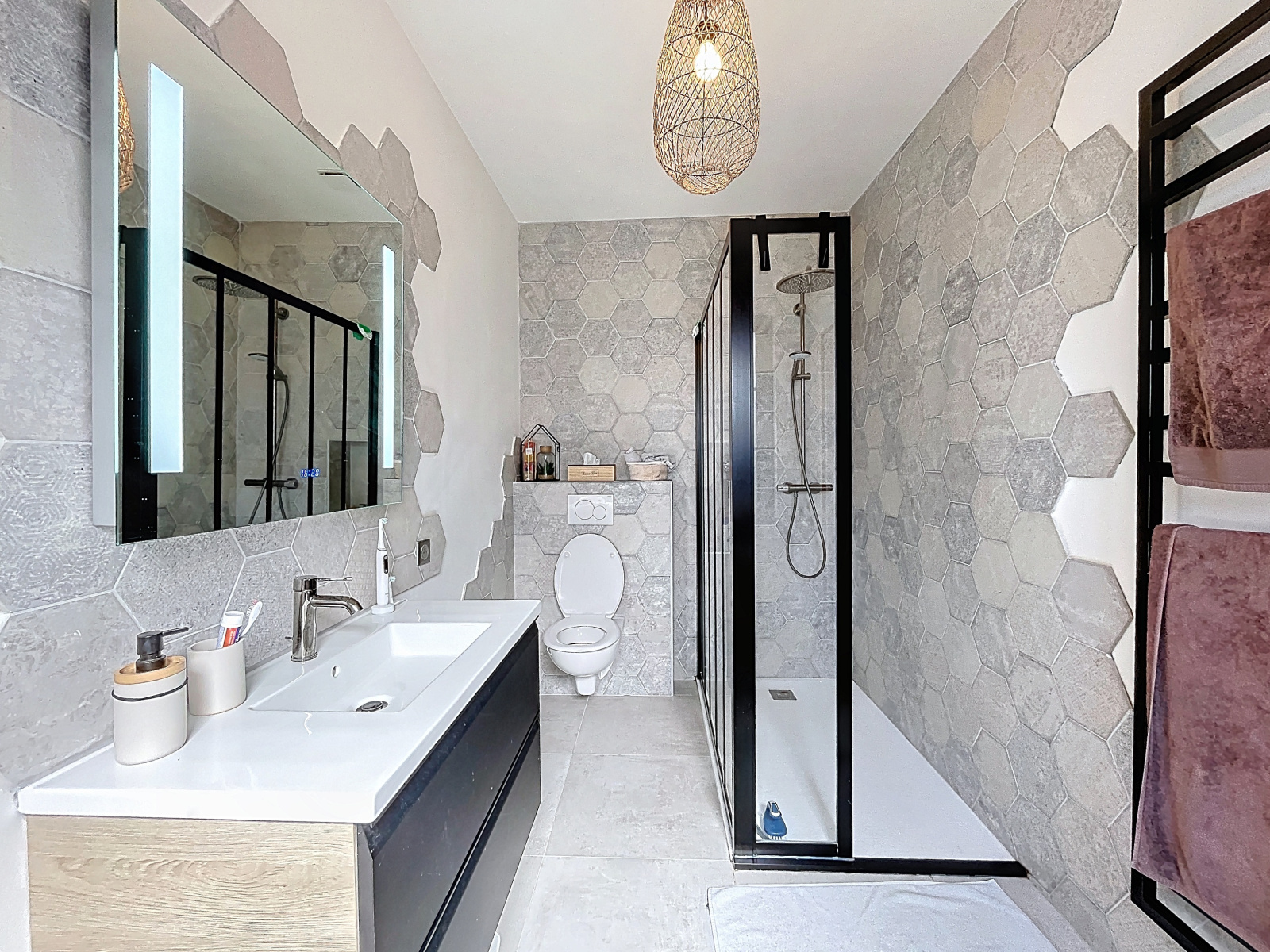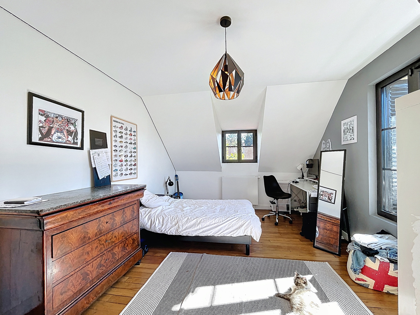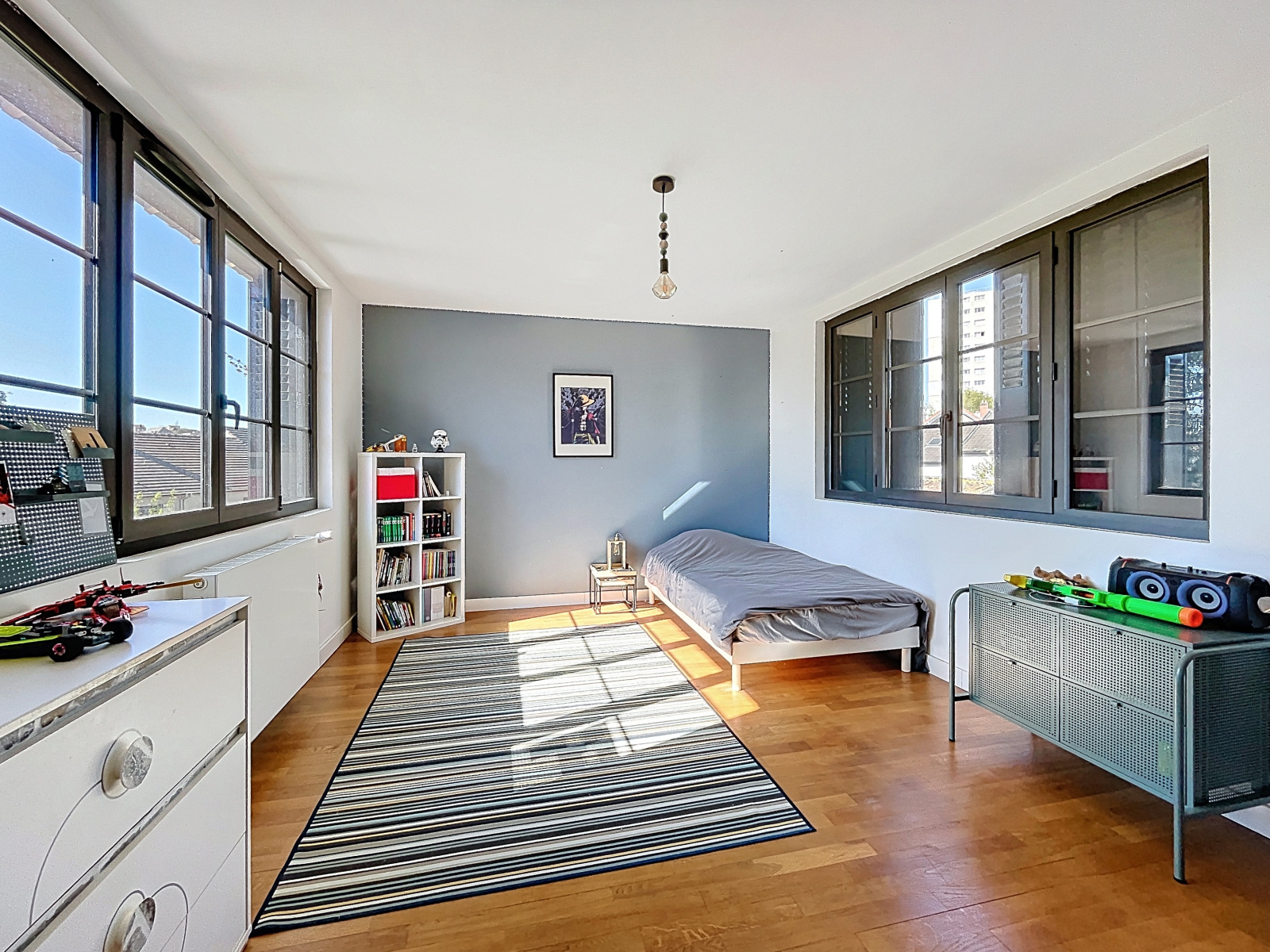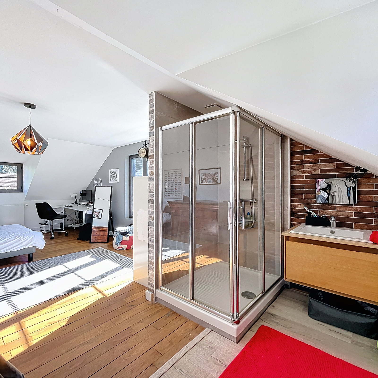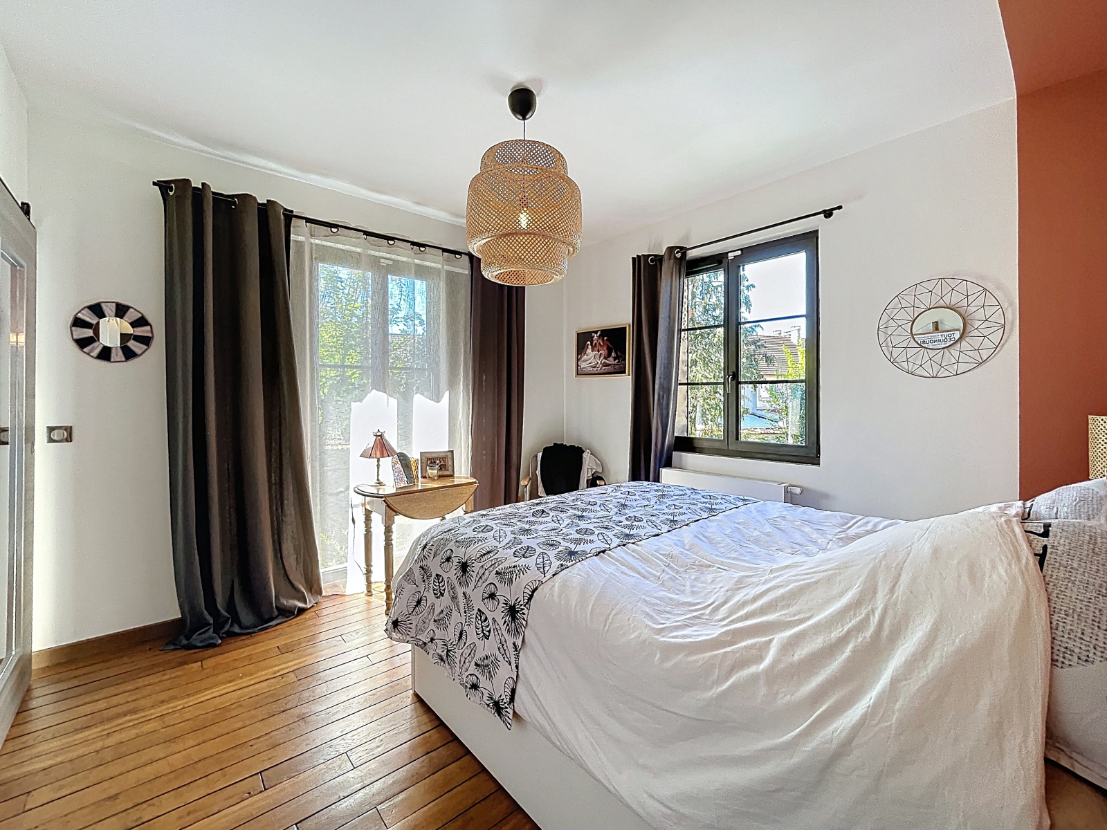 A l'étage, pièce palière, 3 chambres dont une avec son espace salle d'eau et dressing, salle de bains avec wc.