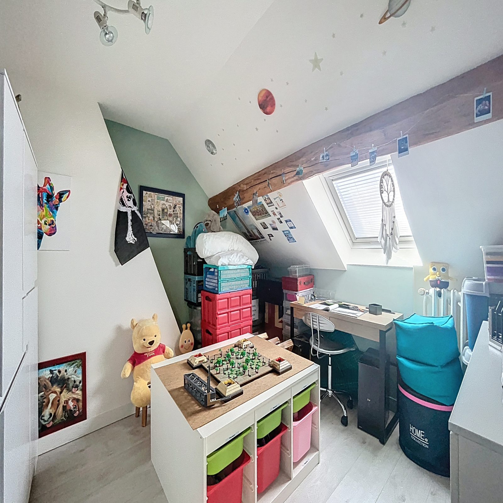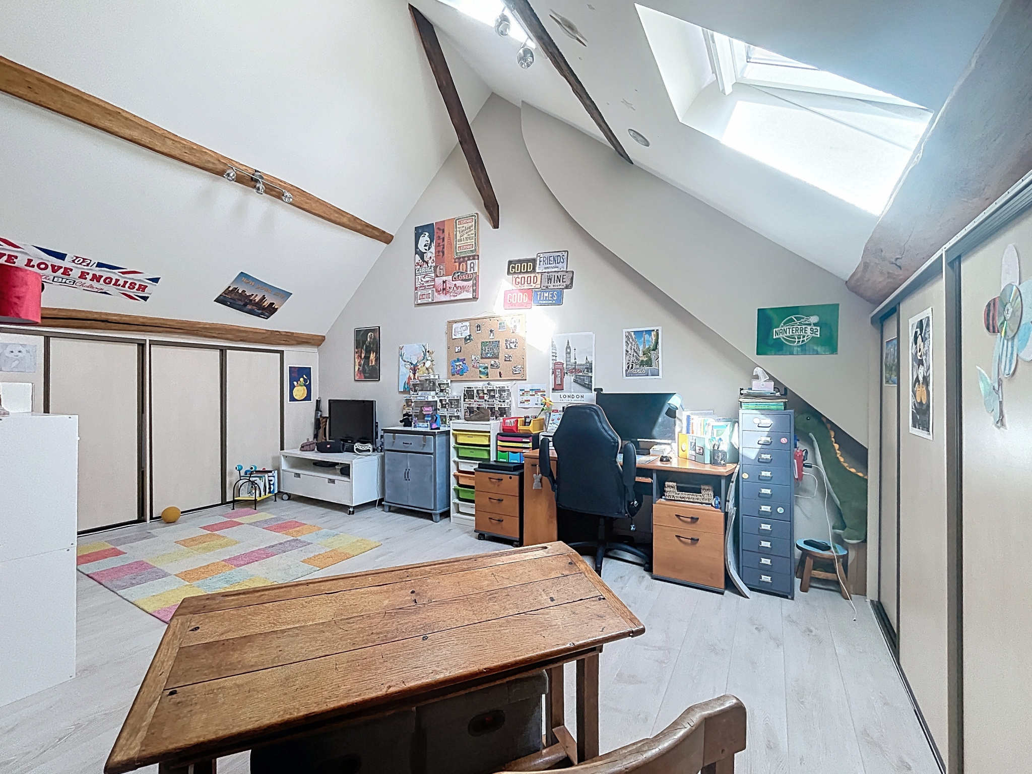 Le second étage propose une spacieuse salle de jeux, deux chambres supplémentaires et une seconde salle d’eau avec WC.