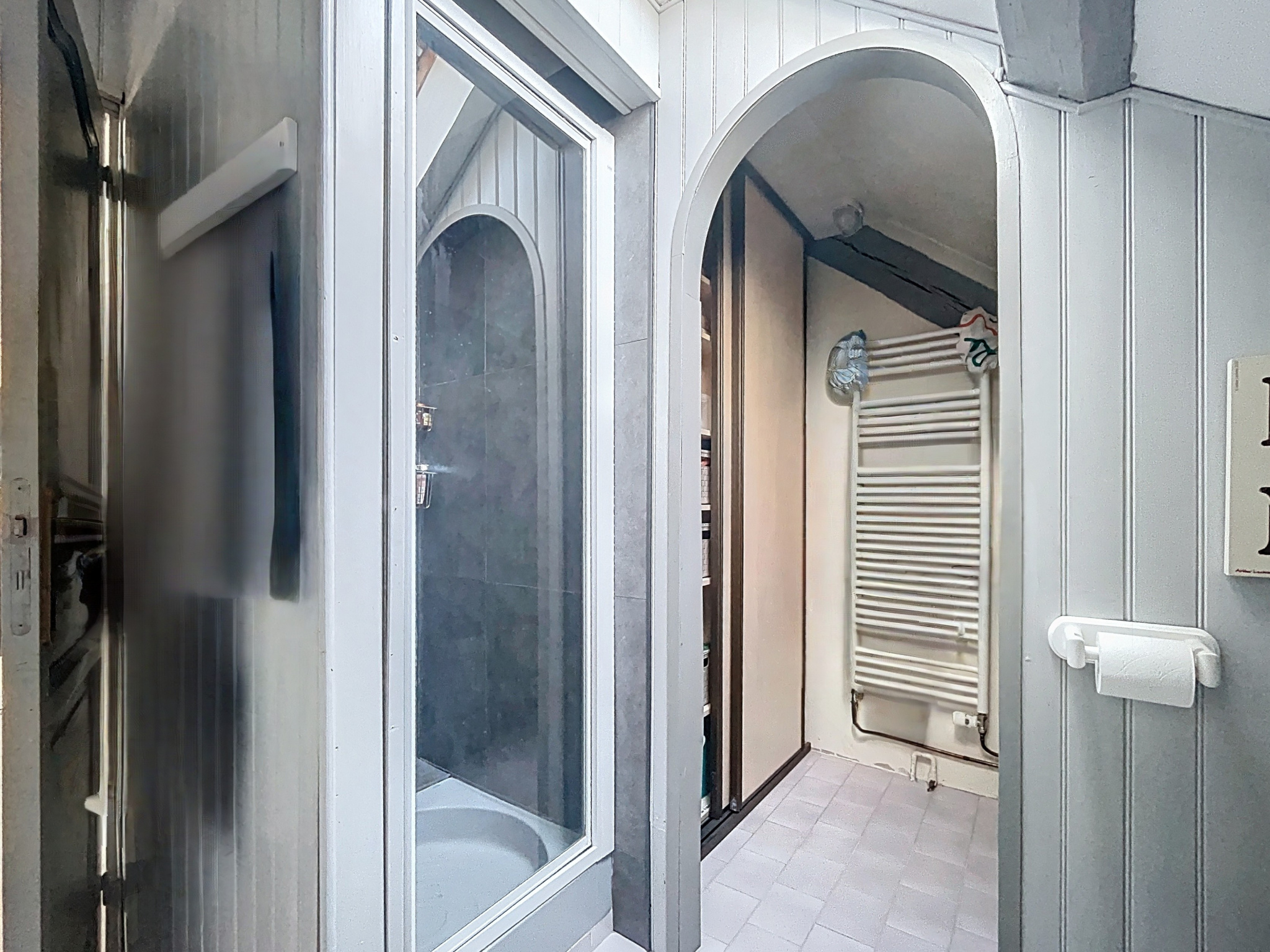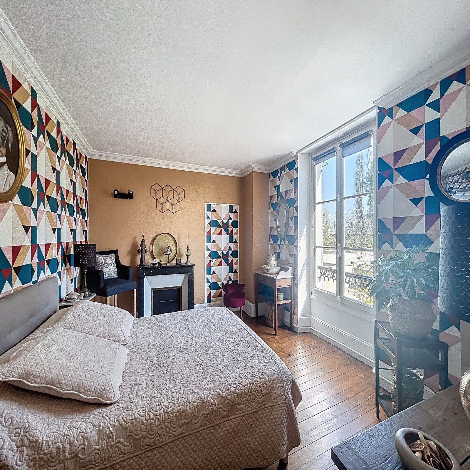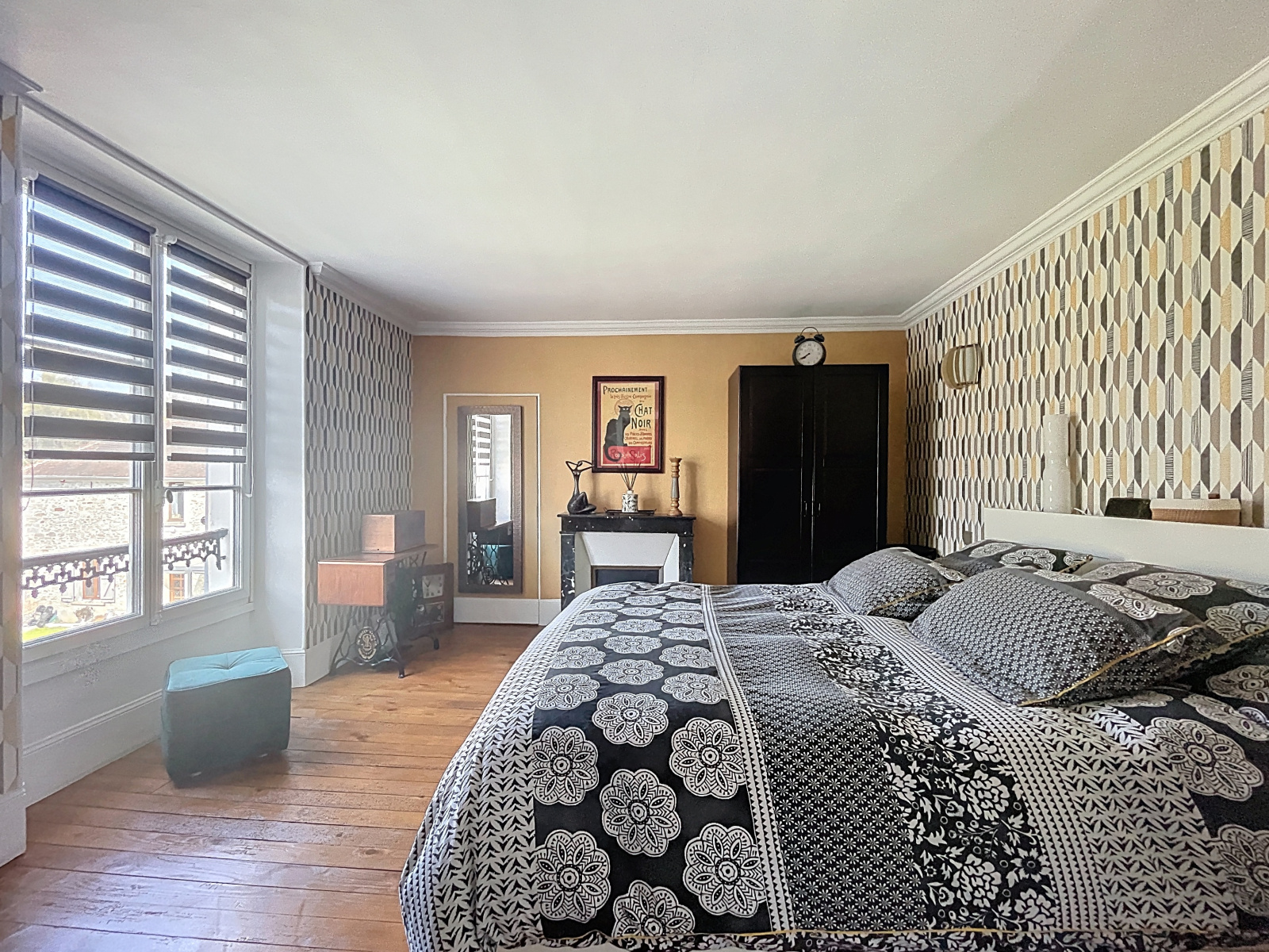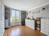 À l’étage, un palier distribue trois grandes chambres, une salle d’eau et un WC séparé.