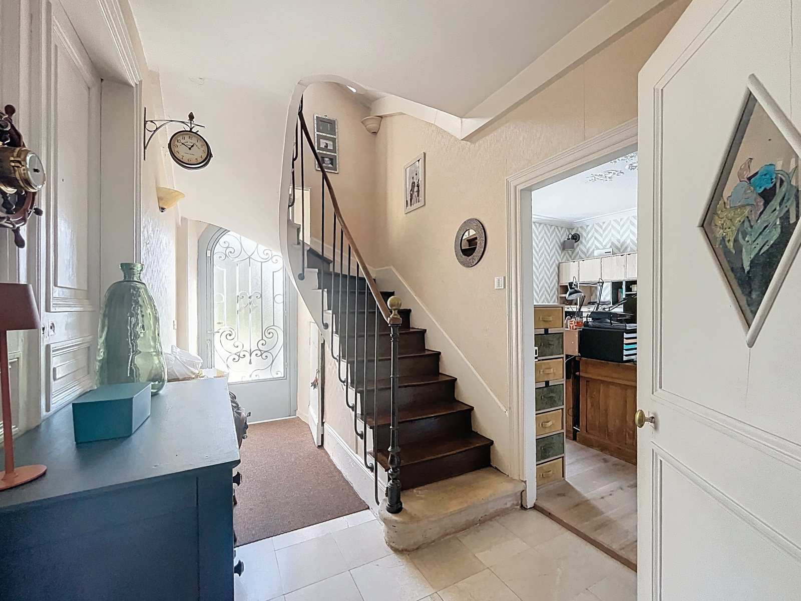 Elle offre, au rez-de-chaussée, une entrée, un séjour traversant baigné de lumière, une cuisine indépendante aménagée ainsi qu’un bureau idéal pour le télétravail.